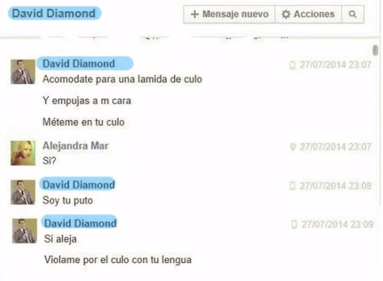 Seguidamente voy a pegar unas cuantas fotos de los chats que David Diamond tuvo el año pasado, el 2014, con la señorita Alejandra Mar, una bella dama soltera, mayorcita, pero aun con atractivo sexual, y que, según ella, jamás ha tenido relaciones sexuales ni la interesa el sexo.