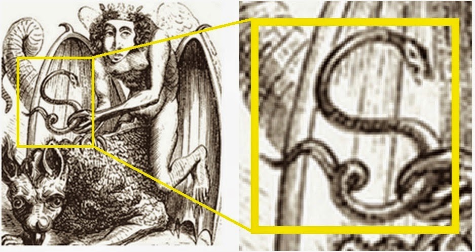 cómo la "S", símbolo de la serpiente (Satanás), junto a otros elementos