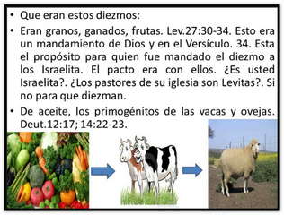 El diezmo verdadero es el mencionado en la Biblia, y fue instituido por el propio Dios en la nación de Israel, Y SIEMPRE CONSISTIA EN SEMILLAS DEL CAMPO PARA PODER COMER, ASÍ COMO EN ANIMALES, TALES COMO VACAS Y OVEJAS.